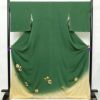 松尾光琳の色留袖です。正絹縮緬でしなやかな風合いを持ち、さりげない柄に箔と金彩を施して格式高い装いを演出しています。一つ紋付きで袷仕立て、身丈170cm、裄丈69.5cmと大きめなサイズで希少な一品です。上品で華やかさが彩るリサイクル着物です。