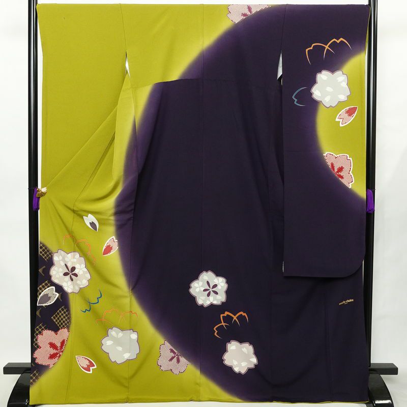 特徴的な配色で、桜の花柄をあしらったmarieclaireの振袖です。正絹縮緬の柔らかくしなやかな風合いが、華やかな着姿を演出します。成人式や二十歳の集いなど、特別な日の装いに最適で、モダンなデザインと伝統美が調和した一枚です。