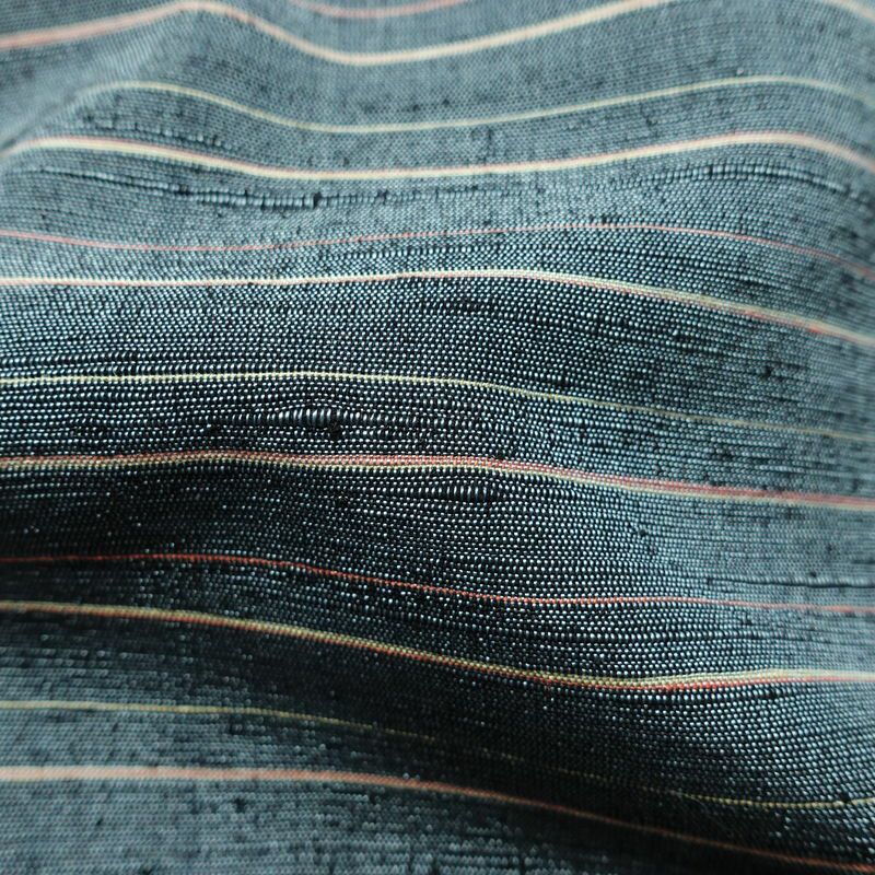 紬糸とは、生糸に向かない品質の玉繭やくず繭をつぶした真綿から糸を紡ぎ出したものです。手で撚りをかけるため二本の糸が複雑に絡み合い、節が所々にできていて太さも均一ではありません。そして糸の段階でいろいろな色に染めあげられます。これらを平織りしたものが紬の着物と呼ばれています。また、素材が木綿のものもあります。