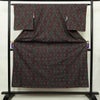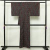 紬 しつけ糸付き 正絹 古典柄 袷仕立て 身丈153.5cm 裄丈63cm リサイクル着物 着物 黒です。しなやかな風合いとなっております。
