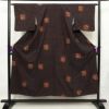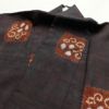 絞り染めの技法が活かされた紬着物です。茶色の落ち着いた色調がシックな印象を与えます。ソフトな風合いが肌馴染みよく、カジュアルながらも品格ある着こなしを楽しめます。