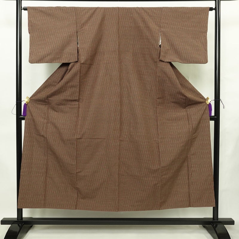 紬 良品 正絹 縞柄・線柄 袷仕立て 身丈151.5cm 裄丈63.5cm リサイクル着物 着物 モダン 茶