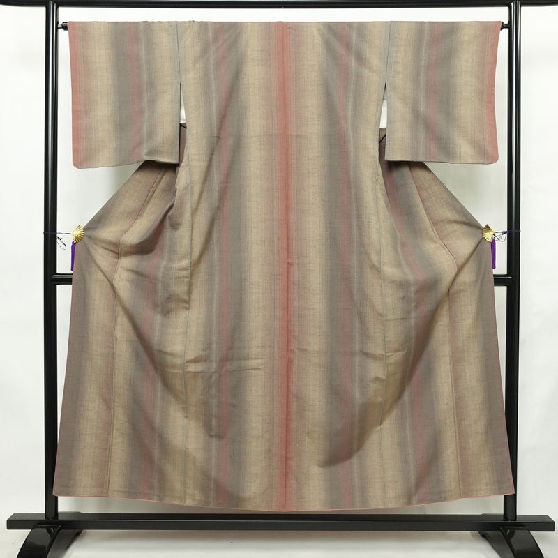 紬 正絹 袷仕立て 縞柄・線柄 リサイクル着物 身丈153cm 裄丈66cm 多色使い 着物