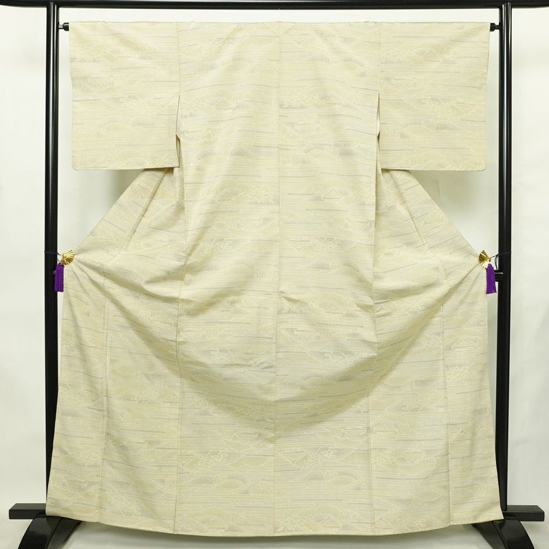 紬 正絹 風景柄 袷仕立て 身丈164cm 裄丈64.5cm リサイクル着物 着物 白です。しなやかな風合いとなっております。