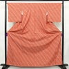 紬 しつけ糸付き 正絹 縞柄・線柄 袷仕立て 身丈164cm 裄丈66.5cm リサイクル着物 着物 ピンク