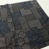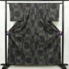 グレー地に特徴的な柄を配した大島紬の袷着物です。大島紬ならではのさらりとした風合いで、着心地が良く、着姿に落ち着きと上品さを与えます。身丈160.5cm、裄丈63cmでしつけ糸付きとなっております。幅広いシーンで活躍しやすいリサイクル着物としておすすめの一枚です。