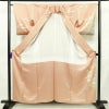 訪問着 良品 金駒刺繍 一つ紋付き 正絹 古典柄 袷仕立て 身丈157.5cm 裄丈65cm リサイクル着物 着物 金彩 入学式 卒業式 七五三 お宮参り フォーマル 紅葉 松 菊 桜 ピンクです。滑らかな風合いとなっております。