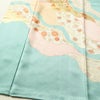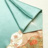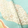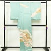 訪問着 良品 落款入り 綸子 正絹 古典柄 袷仕立て 身丈163.5cm 裄丈66.5cm リサイクル着物 着物 刺繍 箔 金彩 入学式 卒業式 七五三 お宮参り フォーマル 菊 緑・うぐいす色です。しなやかな風合いとなっております。