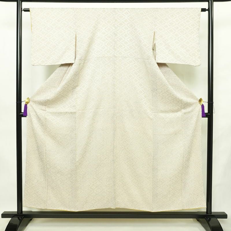 小紋 総絞り 正絹 古典柄 袷仕立て 身丈154cm 裄丈62.5cm リサイクル着物 着物 シンプル クリームです。心地よい風合いとなっております。