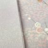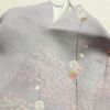 しつけ糸付きの状態の良い花柄の小紋です。箔の光沢が上品さを引き立て、紫・藤色の美しい色合いが特徴です。