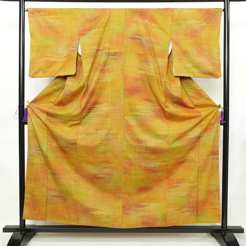 小紋 正絹 雲柄 袷仕立て 身丈157cm 裄丈65.5cm リサイクル着物 着物 橙です。しなやかな風合いとなっております。