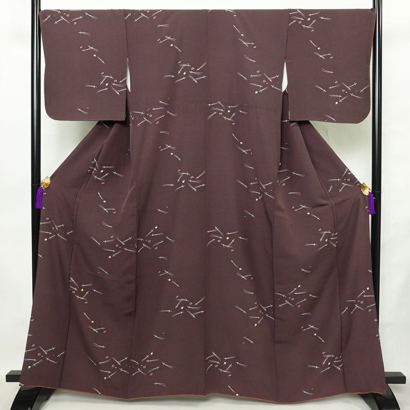 小紋 正絹 木の葉・植物柄 袷仕立て 身丈163cm 裄丈68cm 紫・藤色です。しなやかな風合いとなっております。