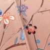 くすみピンクの縮緬小紋です。正絹製で、花柄が美しく、しなやかな風合いが特徴です。身丈165cm、裄丈65cmの袷仕立てで、しつけ糸付きで、初めての着用にも最適です。