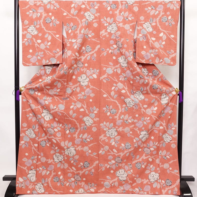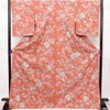 小紋 良品 辻が花 しつけ糸付き 絞り 正絹 花柄 袷仕立て 身丈172.5cm 裄丈67.5cm リサイクル着物 着物 紬地 ピンクです。心地よい風合いとなっております。