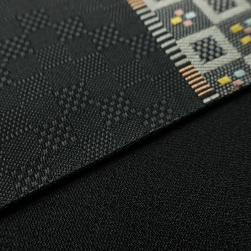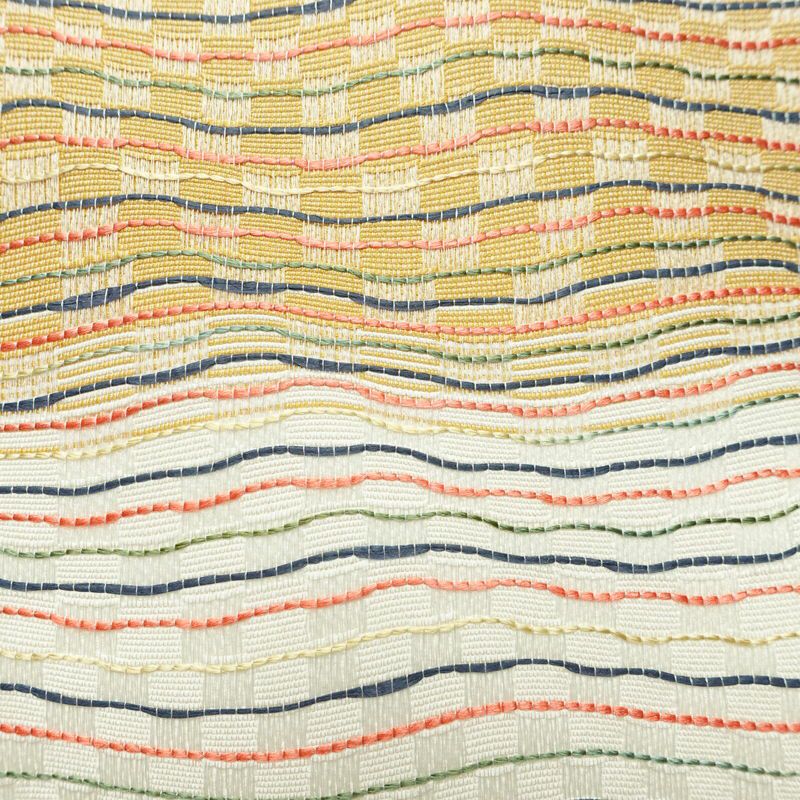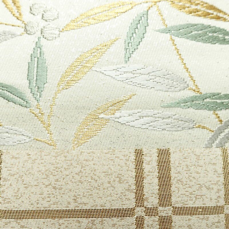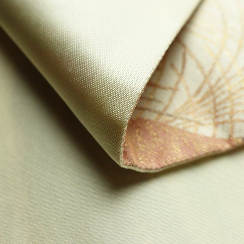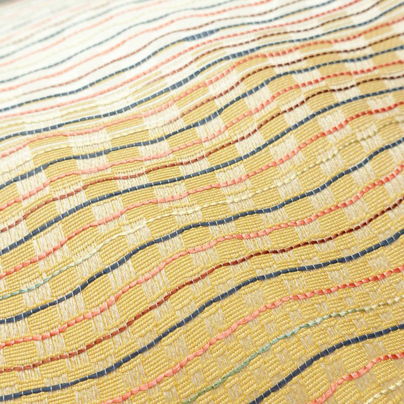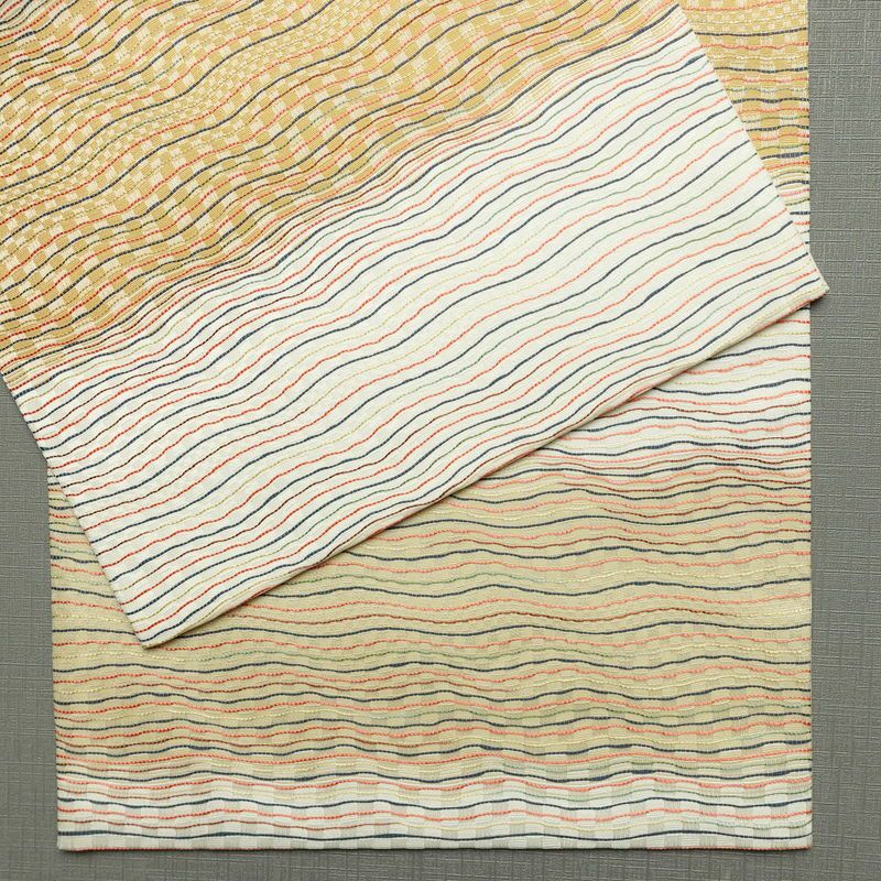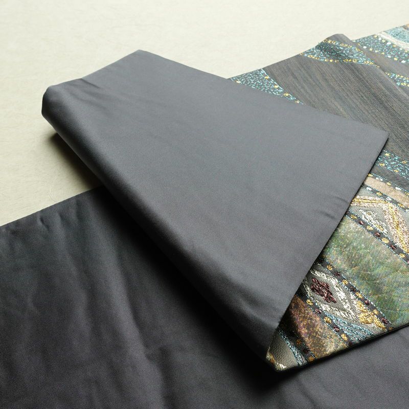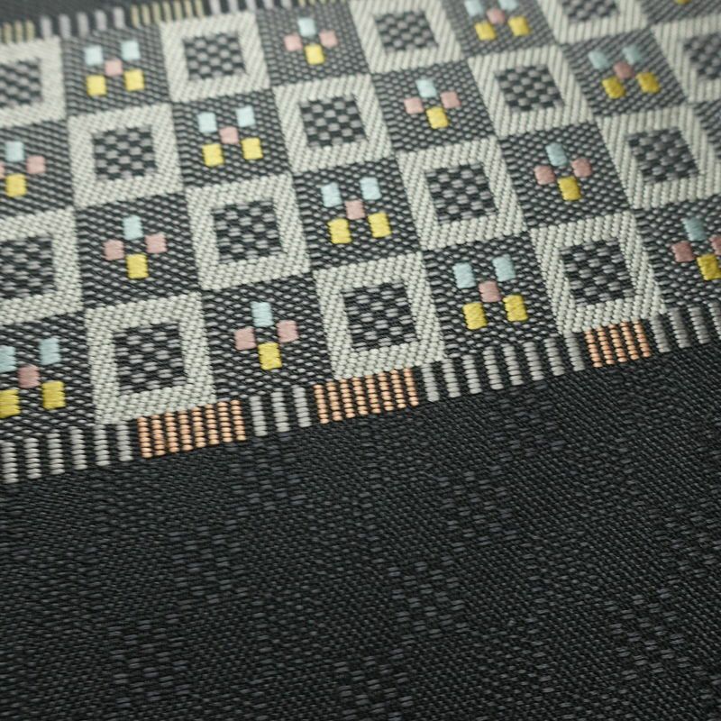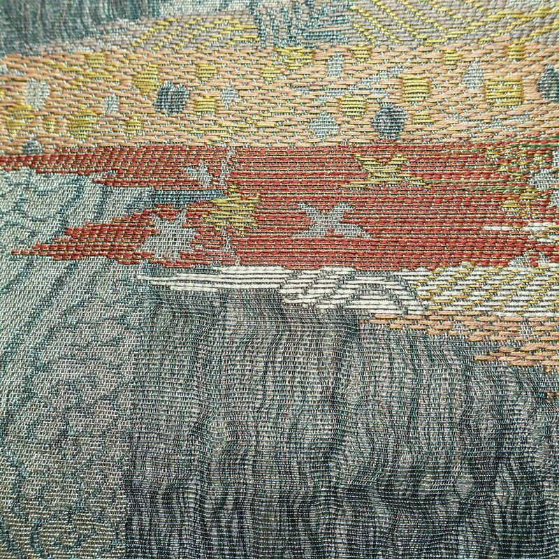 通常、表地は色糸を使った模様があり、裏は無地になります。これも簡略化の現れで、お太鼓にした場合の裏地に織りは必要ないとの考え方です。