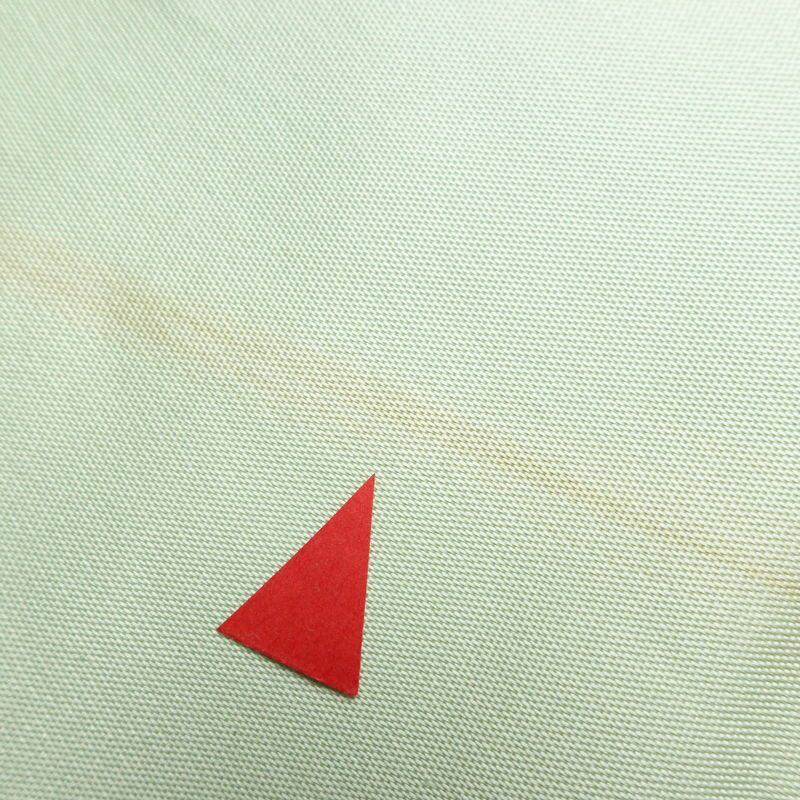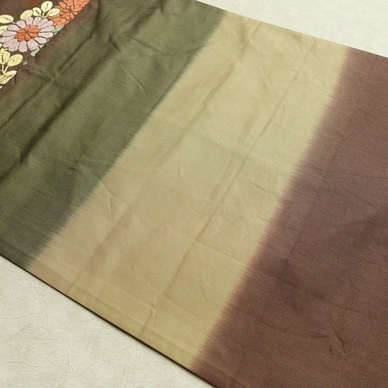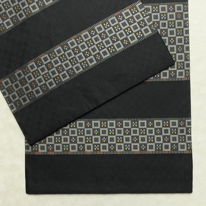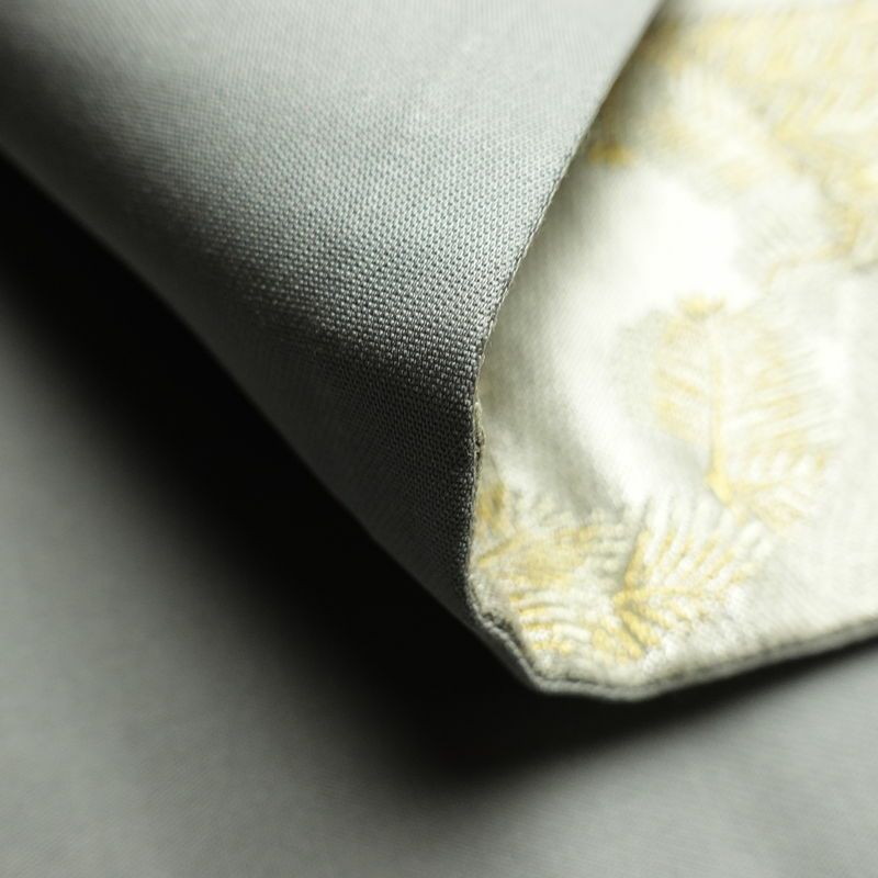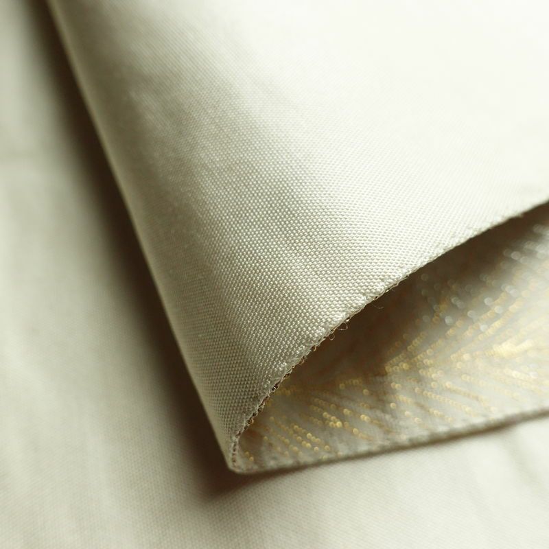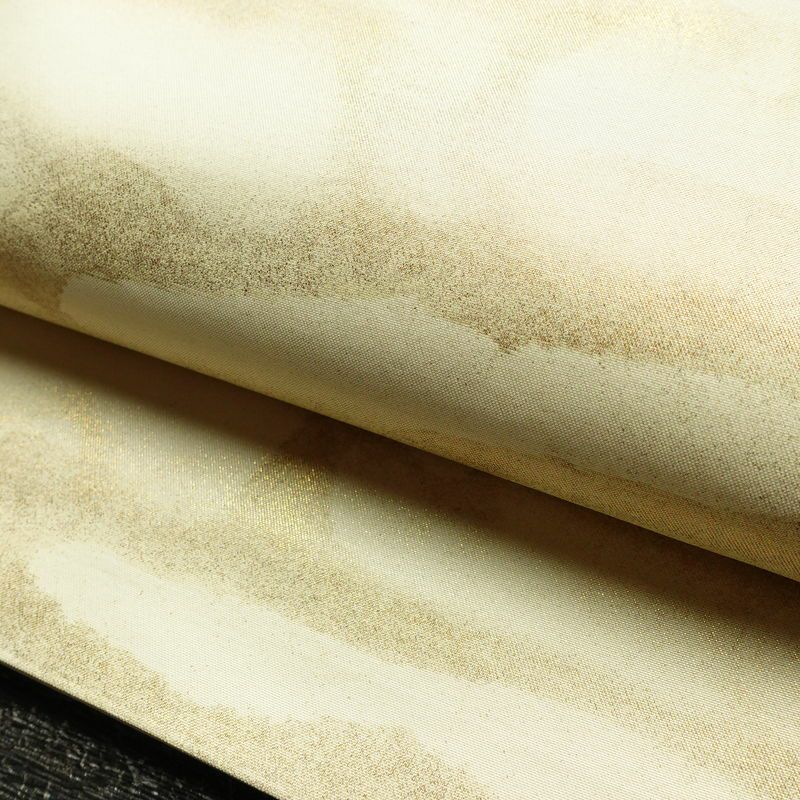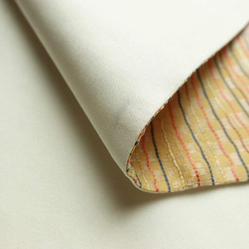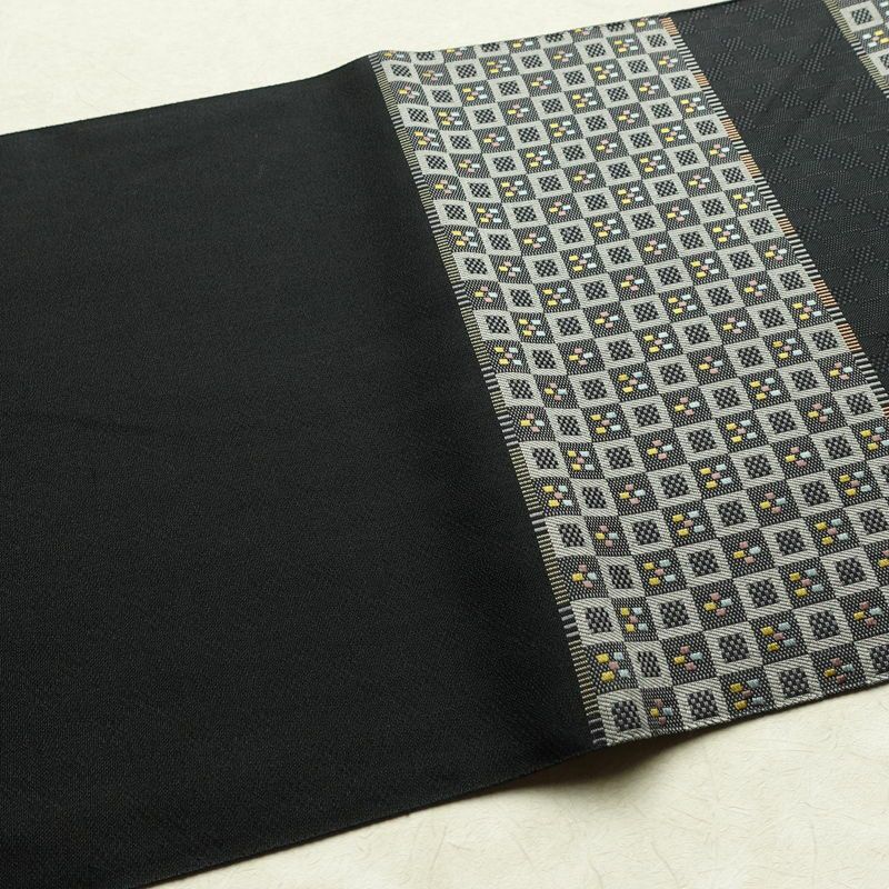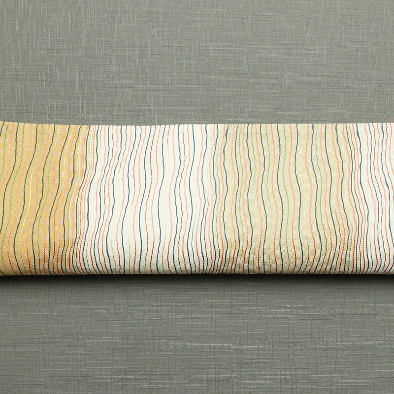 通常、表地は色糸を使った模様があり、裏は無地になります。これも簡略化の現れで、お太鼓にした場合の裏地に織りは必要ないとの考え方です。