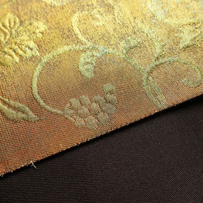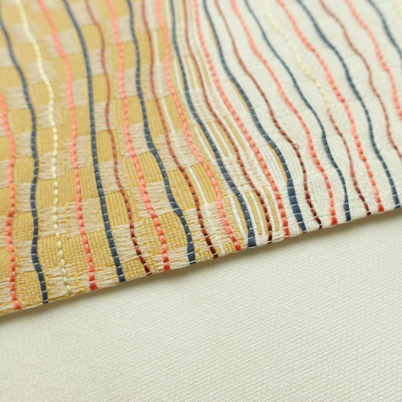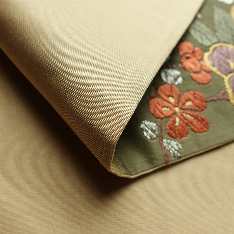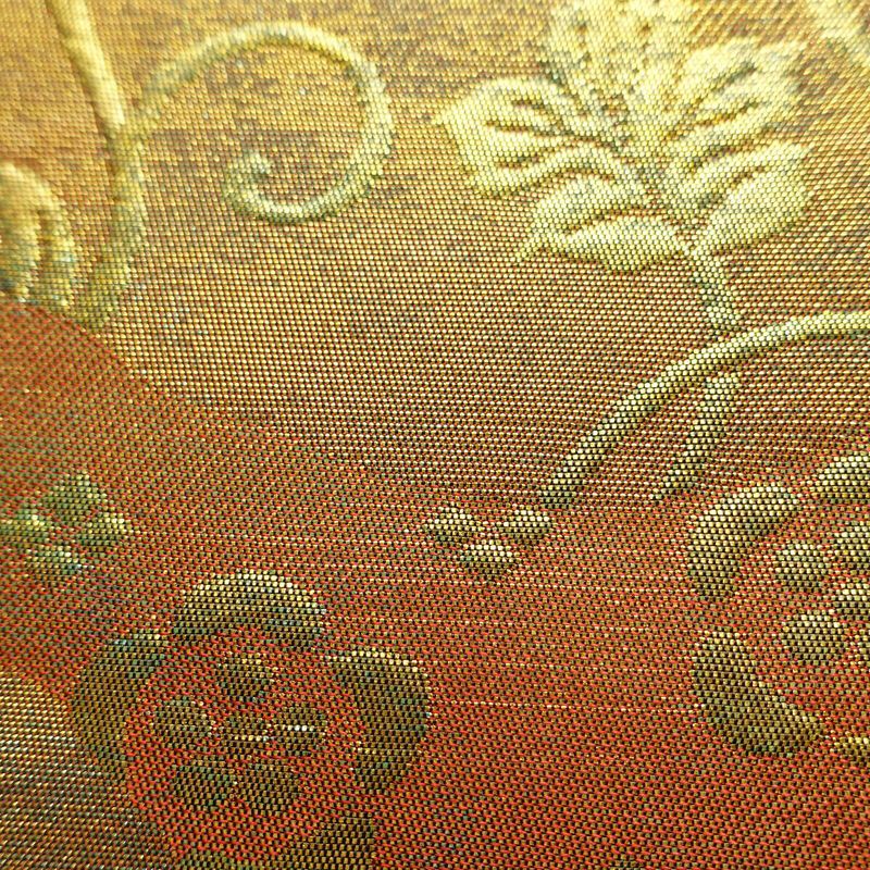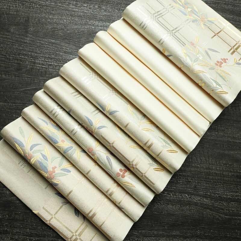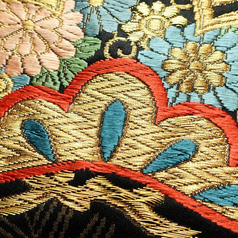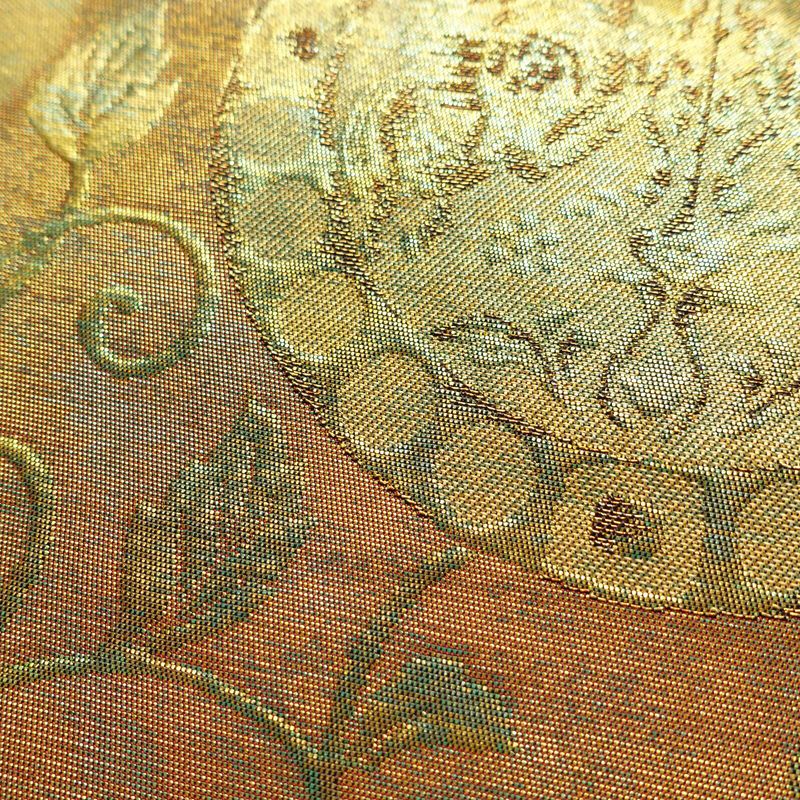 現在は本袋帯ではなく、表地と裏地を別々に織り両生地の脇を縫い合わせたスタイルの袋帯が主流ですが、本袋は同じ糸で両面織られているため生地の馴染みがよく、少数派ながら技術面でもよい帯として認識されています。