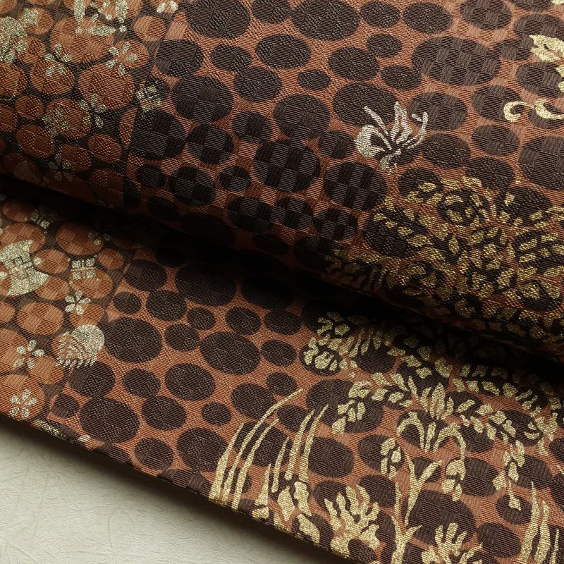 紬や小紋などの着物には、カジュアルな印象の柄で紬生地や染めなどのお洒落袋帯が最近人気です。