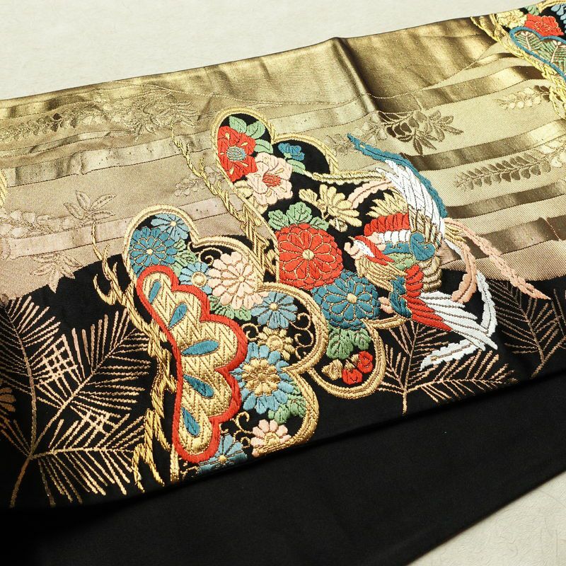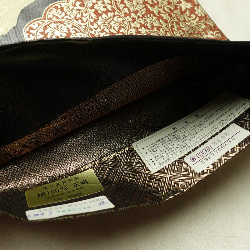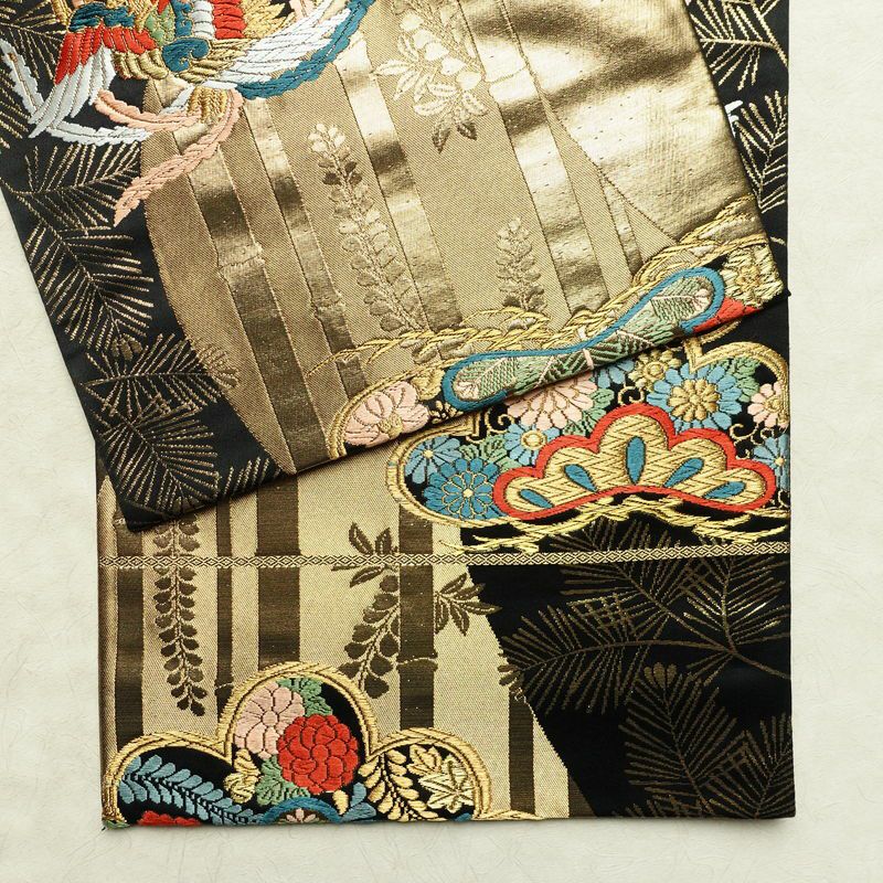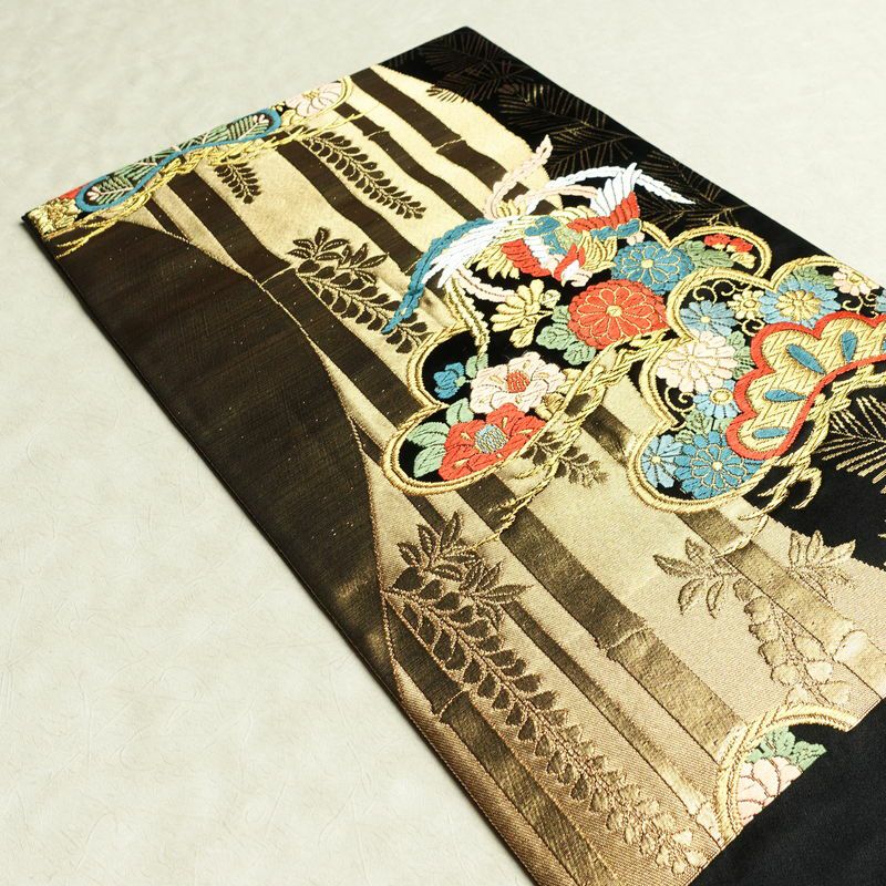袋帯は丸帯に次いで格の高い礼装用の帯です。現代では重く扱いにくい丸帯より、軽く締め易い袋帯の方が多く使用されています。