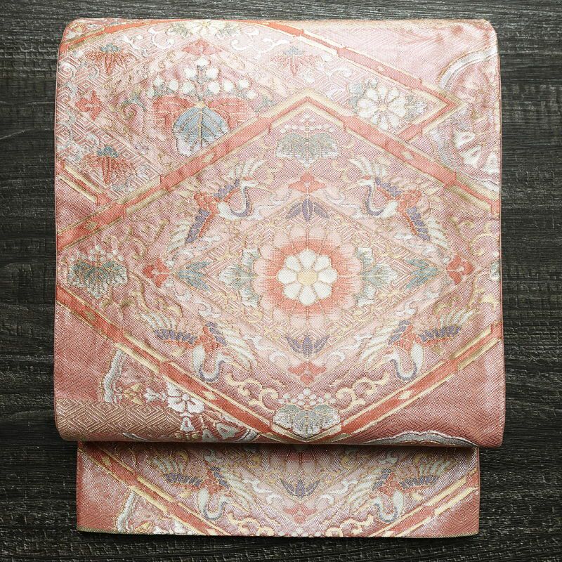 袋帯 六通柄 フォーマル用 正絹 古典柄 箔 帯 ピンク