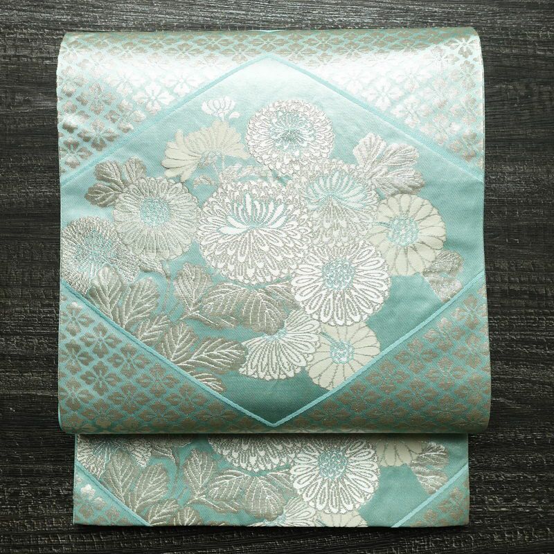 袋帯 六通柄 フォーマル用 正絹 菊 花柄 箔 帯 青・紺