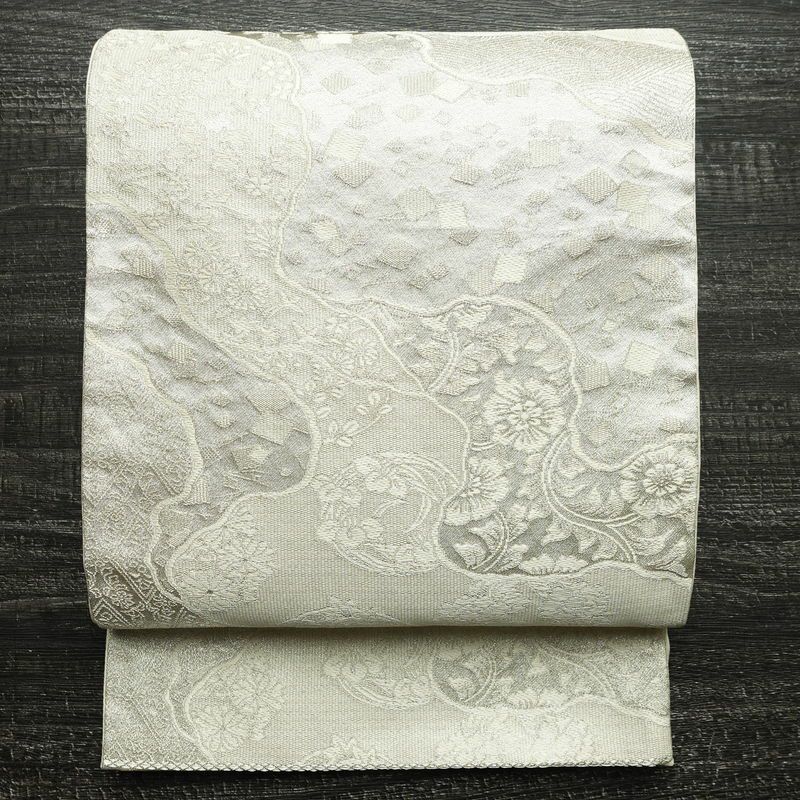 袋帯 未仕立て 佐賀つづれ織 六通柄 フォーマル用 正絹 木の葉・植物柄 銀糸 帯 金・銀