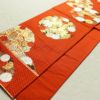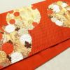 袋帯 六通柄 フォーマル用 正絹 花柄 菊 箔 帯 橙