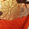 袋帯 六通柄 フォーマル用 正絹 花柄 菊 箔 帯 橙です。目のつまった手触りとなっております。