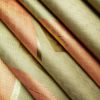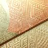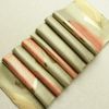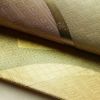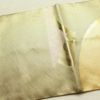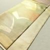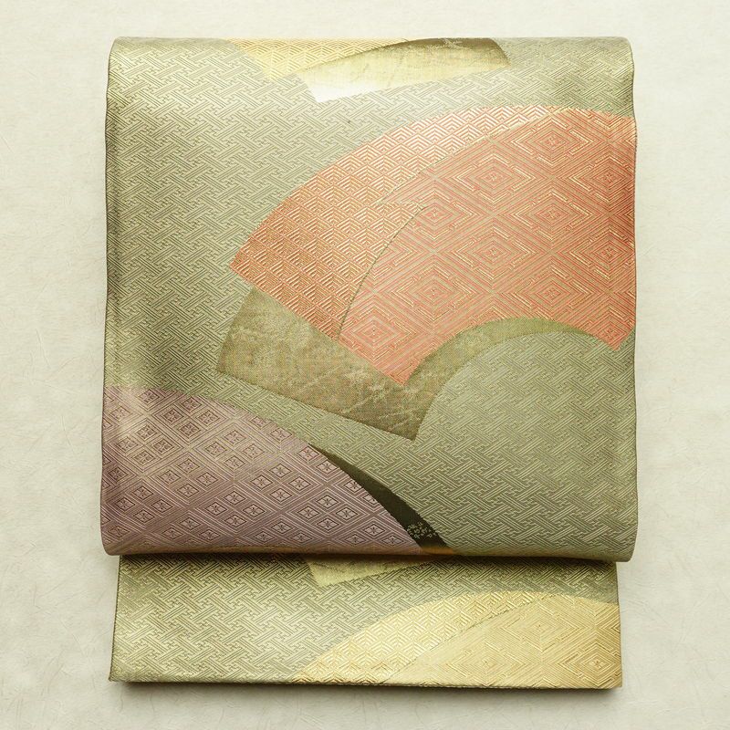 気軽に着られる風合いの六通柄袋帯です。正絹の古典柄が描かれ、光沢感のある箔が施されたデザイン。扇面が上品さを引き立て、フォーマルな場にふさわしい一品です。