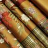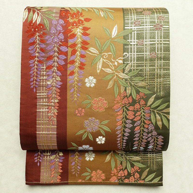 正絹の六通柄袋帯です。古典柄が美しく、箔や金糸が華やかさを引き立てます。目のつまった風合いが特徴で、フォーマルな装いに最適です。