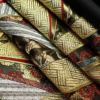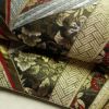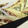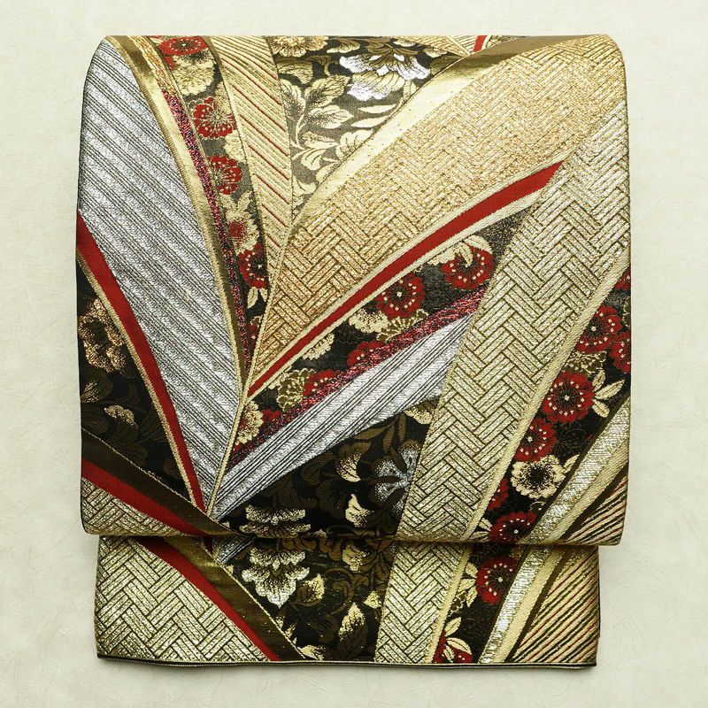 線調花舞錦の古典柄が優雅に施された振袖用袋帯です。金糸や銀糸が煌めき、ざっくりとした風合いが柔らかくも力強い印象を与えます。振袖をさらに華やかに彩る、特別な日のための一品です。