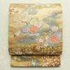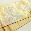 本金箔を贅沢に用いた琳派春秋文が特徴の袋帯。金と銀の輝きがフォーマルな場にふさわしい高級感を放ちます。春と秋の美しい情景が織り込まれたデザインは、日本の四季を愛する方に最適な一品です。パリッとした風合いで、着姿を美しく整えます。