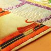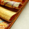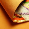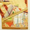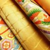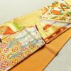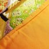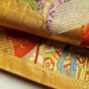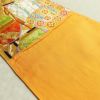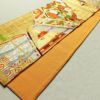 橙色の鮮やかな色調に古典柄が美しく映えるフォーマル用袋帯。王朝絵巻のような上品で格調高いデザインが、特別な日の装いを一層引き立てます。箔や金糸、銀糸を贅沢に使った細やかなディテールは、見る人を魅了し、着用者の品格を際立たせます。しっかりとした風合いがあり、安定感のある着心地を提供します。