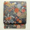 袋帯 六通柄 フォーマル用 正絹 木の葉・植物柄 金糸 帯 青・紺