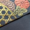 青と紺の地色に植物柄が描かれた袋帯。気軽にフォーマルな雰囲気を楽しめます。