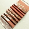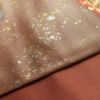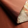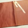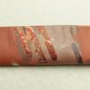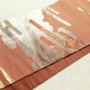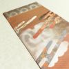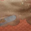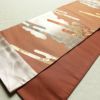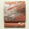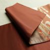 証紙付きの未仕立て袋帯。六通柄に古典柄が繊細に織り込まれ、箔や金通し、金糸の装飾が格調高さを引き立てます。茶色の落ち着いた色彩とさらりとした風合いがフォーマルな場での装いにふさわしい一品です。