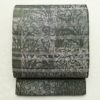美しい金通しが施された木の葉・植物柄の袋帯です。緑・うぐいす色の色合いとざっくりとした風合いが特徴です。