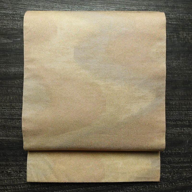 袋帯 全通柄 フォーマル用 正絹 流水・波柄 リサイクル帯 帯 金糸 シンプル ベージュです。ざっくりとした風合いとなっております。