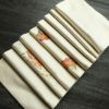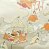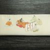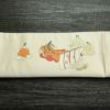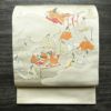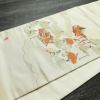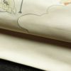 人物柄が描かれたフォーマルな太鼓柄袋帯。正絹の滑らかな質感が装いに気品を与え、クリーム色の上品なトーンがどの場面でも優雅な印象を与えます。特別な式典にふさわしい一品で、注目を集めるデザインです。