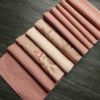 太鼓柄の一般用袋帯。正絹素材に花柄と金通しが施され、紬地のざっくりとした風合いが個性を際立たせます。ピンク色の鮮やかなトーンが装いに優しさと華やかさを加え、少し特別な場面まで活躍するアイテムです。