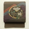 袋帯 太鼓柄 良品 一般用 正絹 花柄 リサイクル帯 帯 金糸 未使用品 茶