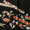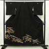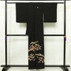 黒留袖 良品 金駒刺繍 五つ紋付き 比翼付き 正絹 古典柄 袷仕立て 身丈155cm 裄丈64cm リサイクル着物 着物 箔 金彩 結婚式 フォーマル 黒です。しなやかな風合いとなっております。