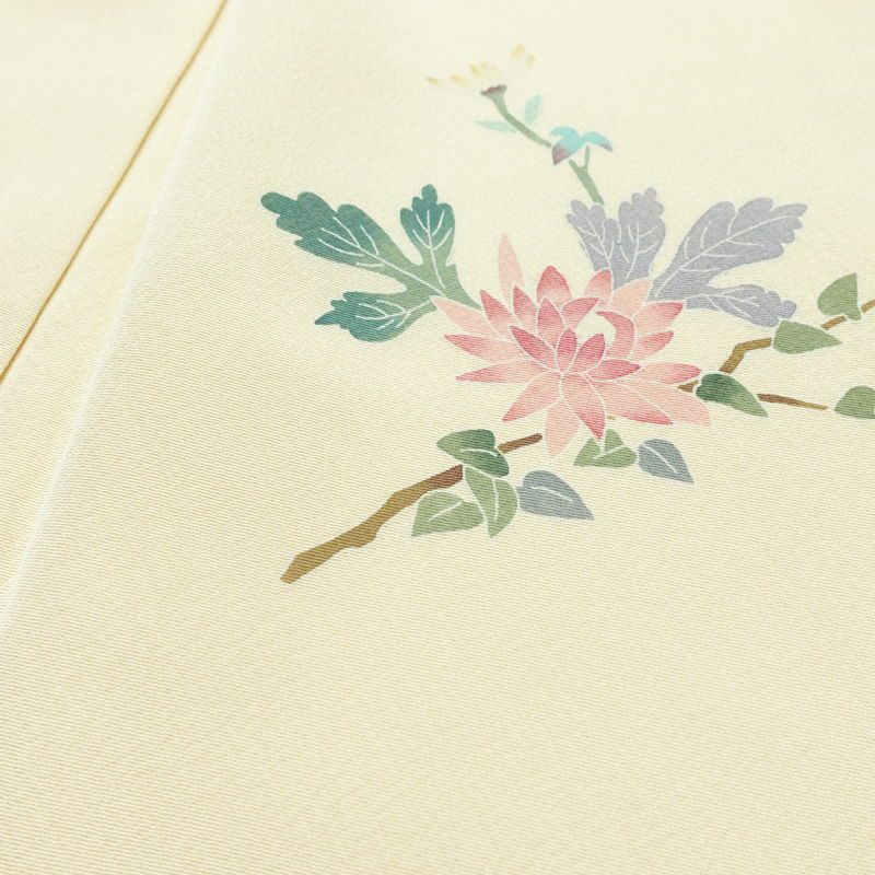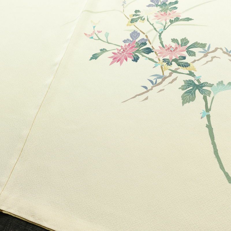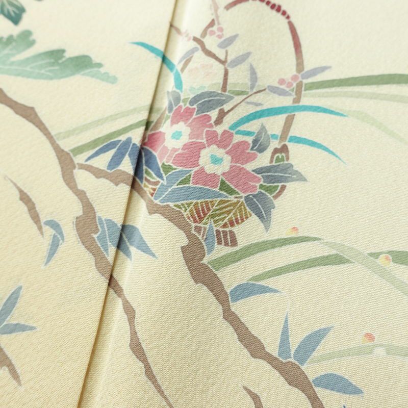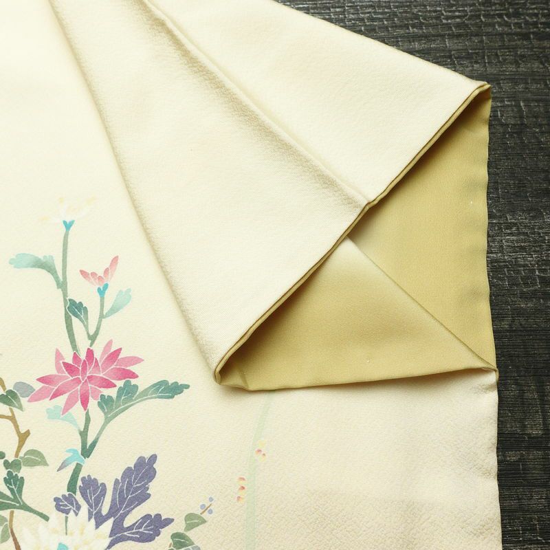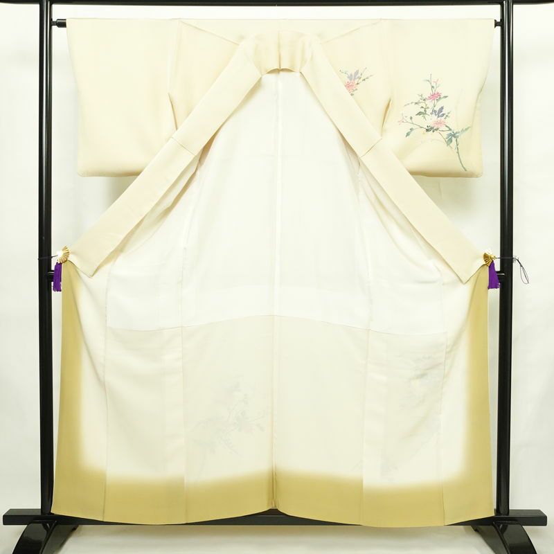 付け下げ 良品 縮緬 正絹 花柄 袷仕立て 身丈157cm 裄丈64.5cm リサイクル着物 着物 入学式 卒業式 七五三 お宮参り フォーマル 上品 クリームです。しなやかな風合いとなっております。