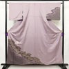 付け下げ しつけ糸付き 絞り 一つ紋付き 正絹 花柄 袷仕立て 身丈156cm 裄丈63.5cm リサイクル着物 着物 刺繍 金彩 入学式 卒業式 七五三 お宮参り フォーマル 菊 紫・藤色です。しなやかな風合いとなっております。