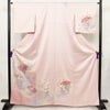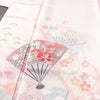 付け下げ しつけ糸付き 正絹 古典柄 袷仕立て 身丈163.5cm 裄丈64cm リサイクル着物 着物 入学式 卒業式 七五三 お宮参り フォーマル 上品 扇子 菊 ピンクです。滑らかな風合いとなっております。