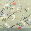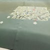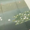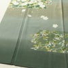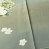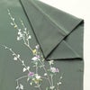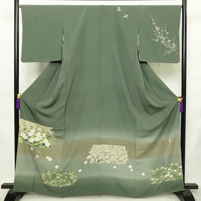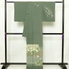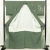 付け下げ 落款入り 縮緬 正絹 花柄 袷仕立て 身丈164cm 裄丈66.5cm リサイクル着物 着物 箔 共八掛 入学式 卒業式 七五三 お宮参り フォーマル 緑・うぐいす色です。しなやかな風合いとなっております。