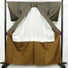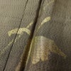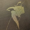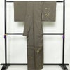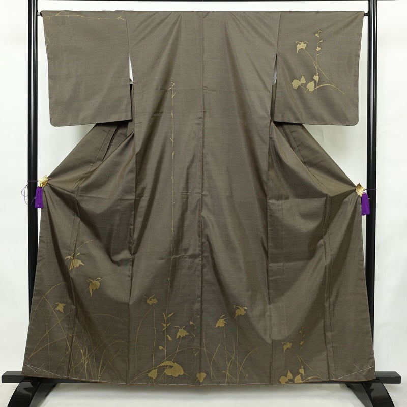 付け下げ 本場縞大島 美品 大島紬 しつけ糸付き 正絹 木の葉・植物柄 袷仕立て 身丈160.5cm 裄丈65.5cm リサイクル着物 着物 モダン 茶です。さらりとした風合いとなっております。