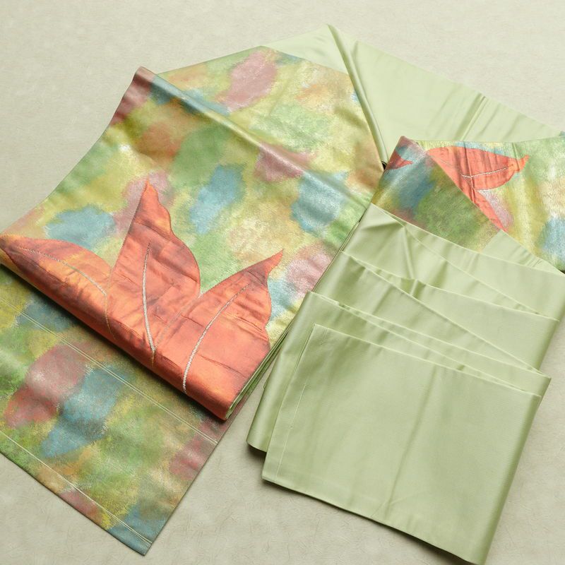 帯にキラキラ光る金銀の箔が入っているなら礼装やよそ行きに適しています。街着、普段着と合わせたい場合は箔なしを。上品な生成り地の染め帯、季節感がないものなら年中迷わず締められます。帯を選んだらさし色、もしくは馴染む色の帯揚げ・帯締めを合わせてイメージを膨らますのも賢い選択です。