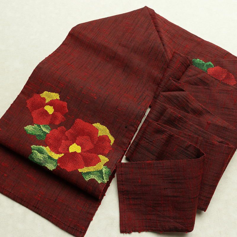 エンジ・小豆の名古屋帯