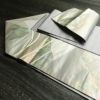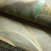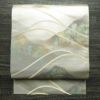名古屋帯 六通柄 正絹 風景柄 名古屋仕立て 箔 帯 紫・藤色です。目のつまった手触りとなっております。
